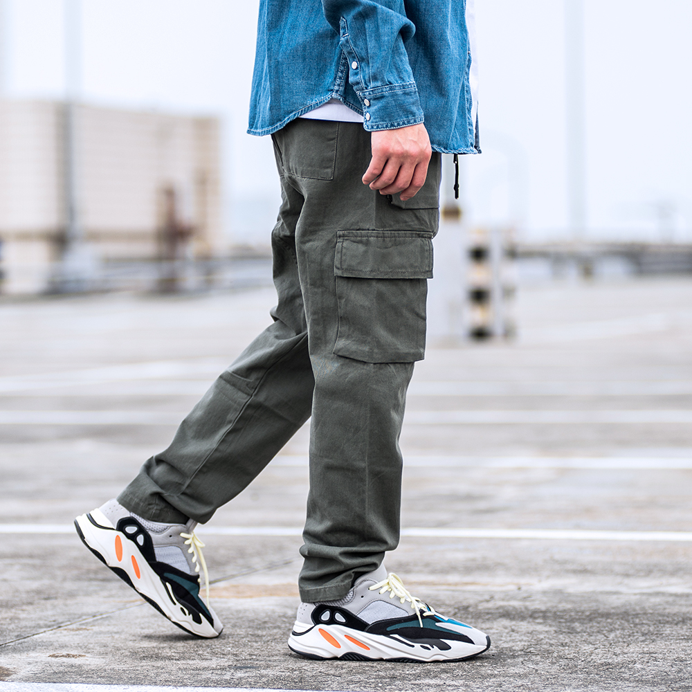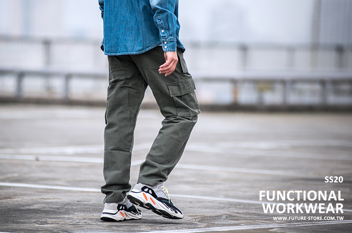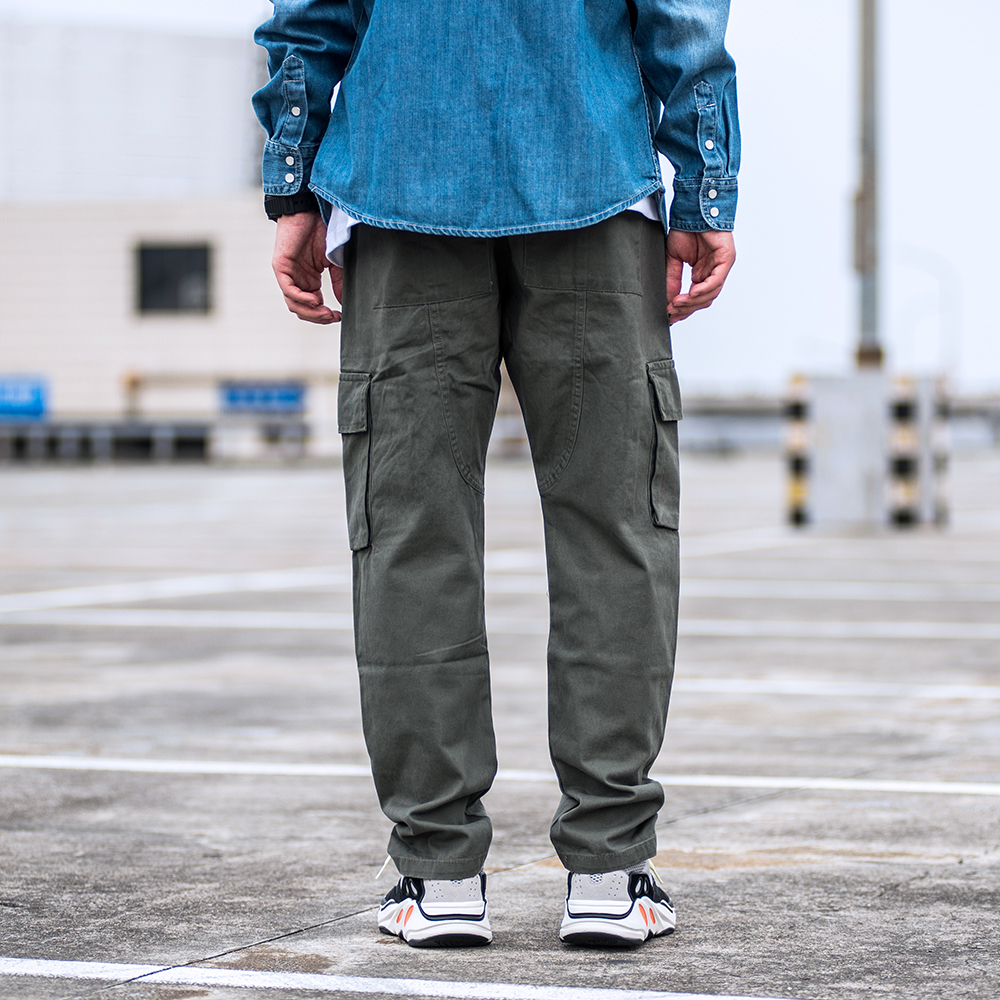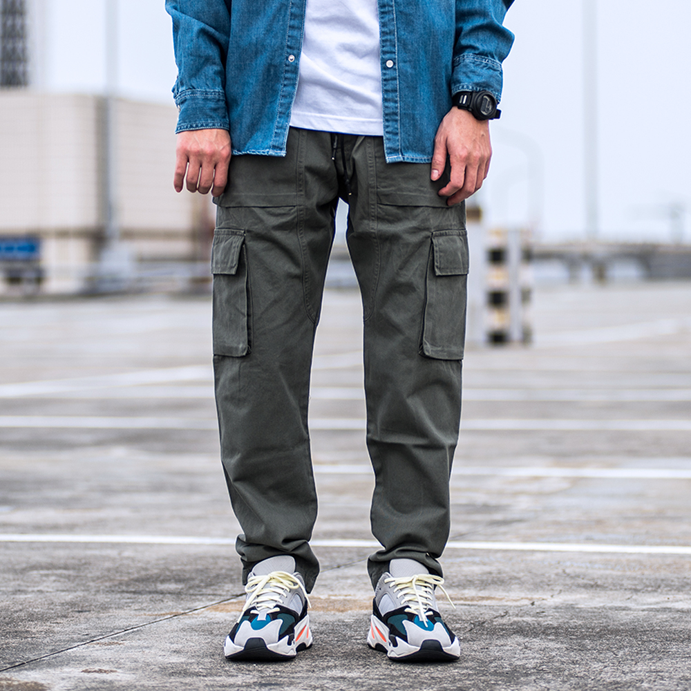 休閒 軍事工裝 多口袋 抽繩工作長褲