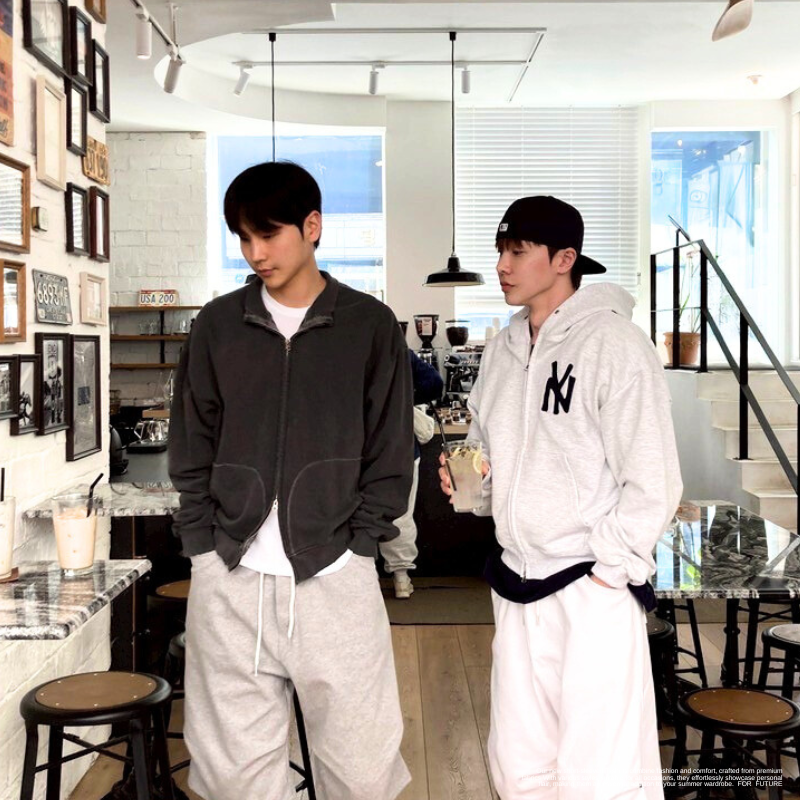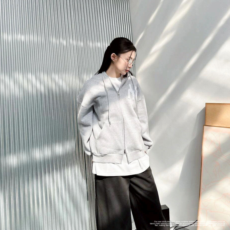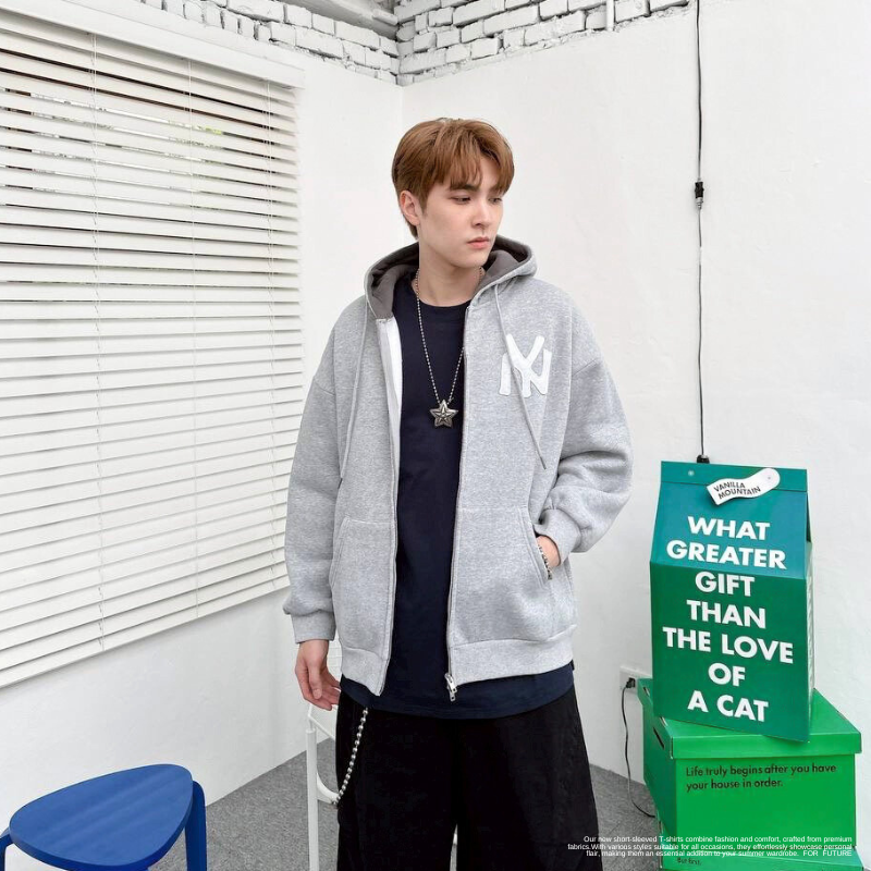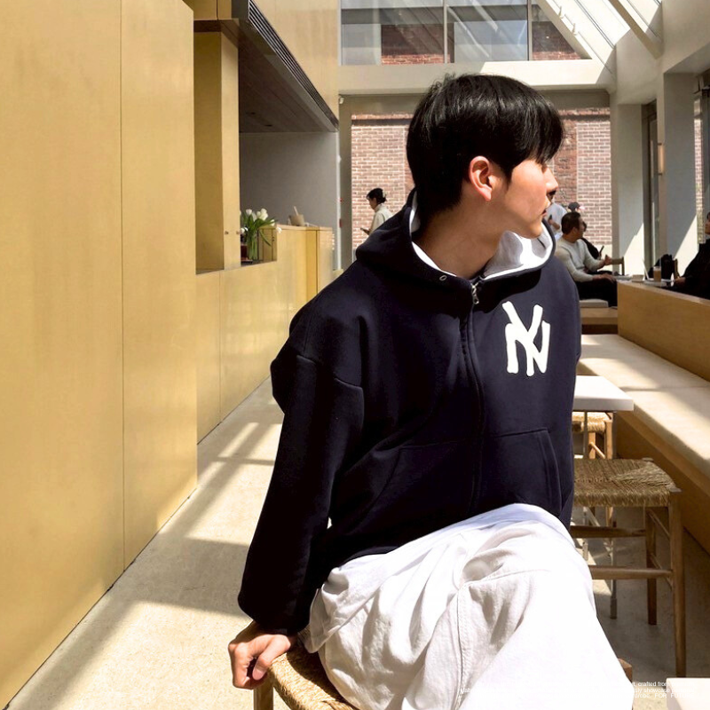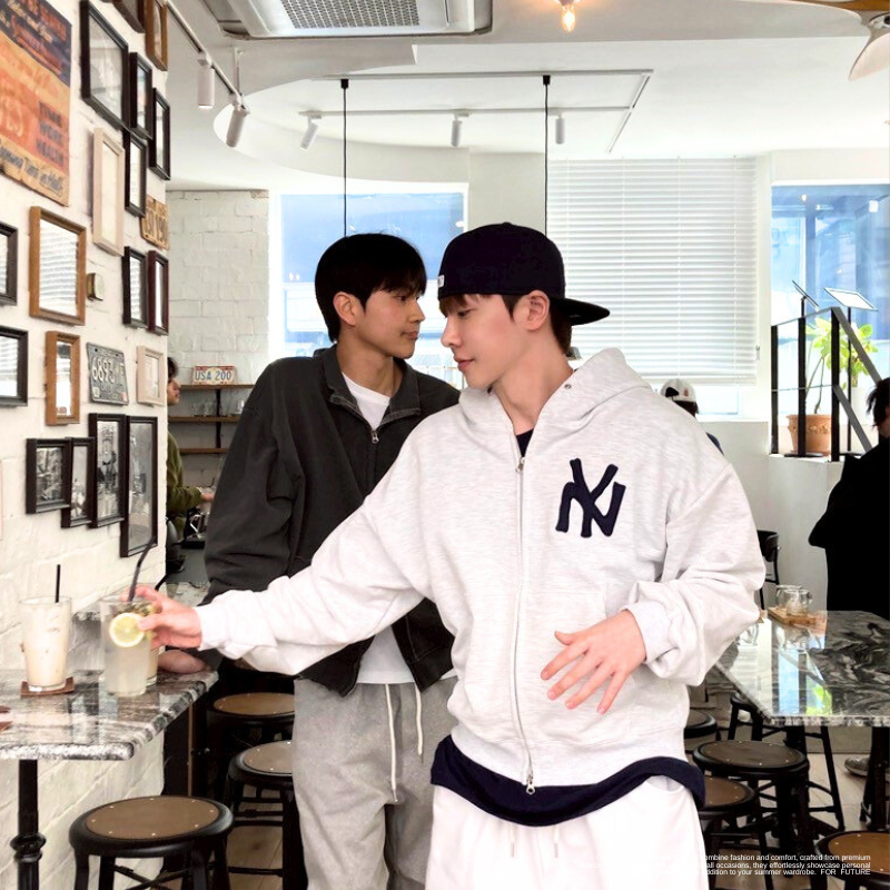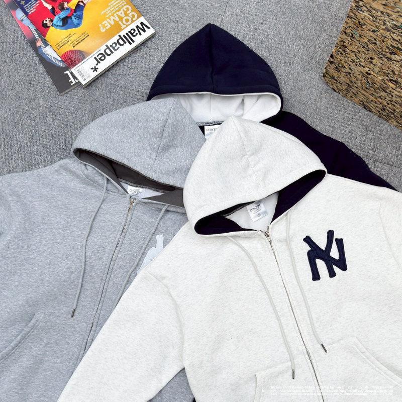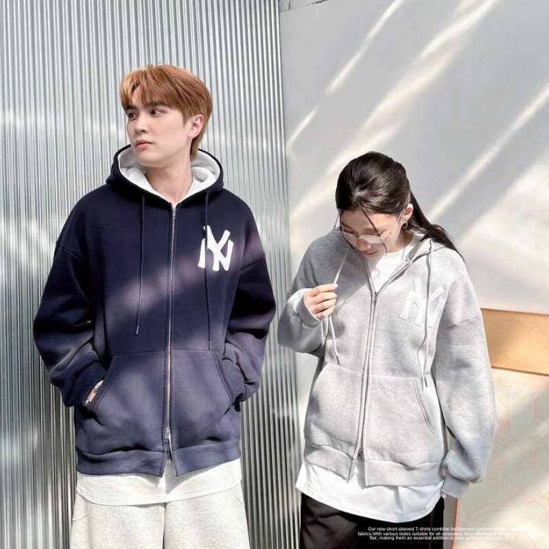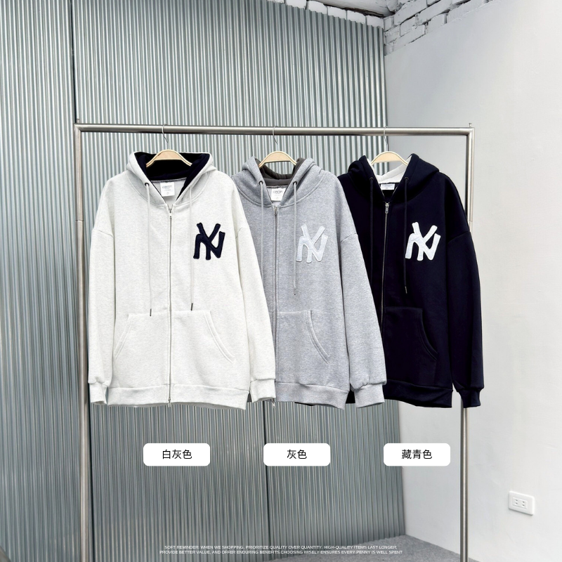 NY字母 線條雙鏈連帽外套