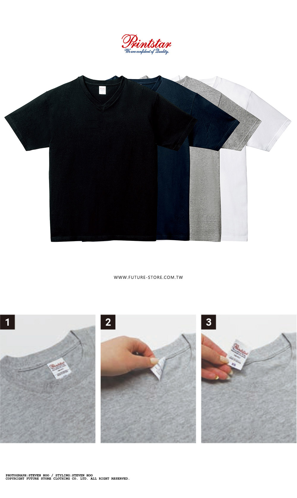 日本 Printstar 5.6oz 108 全棉V領T恤