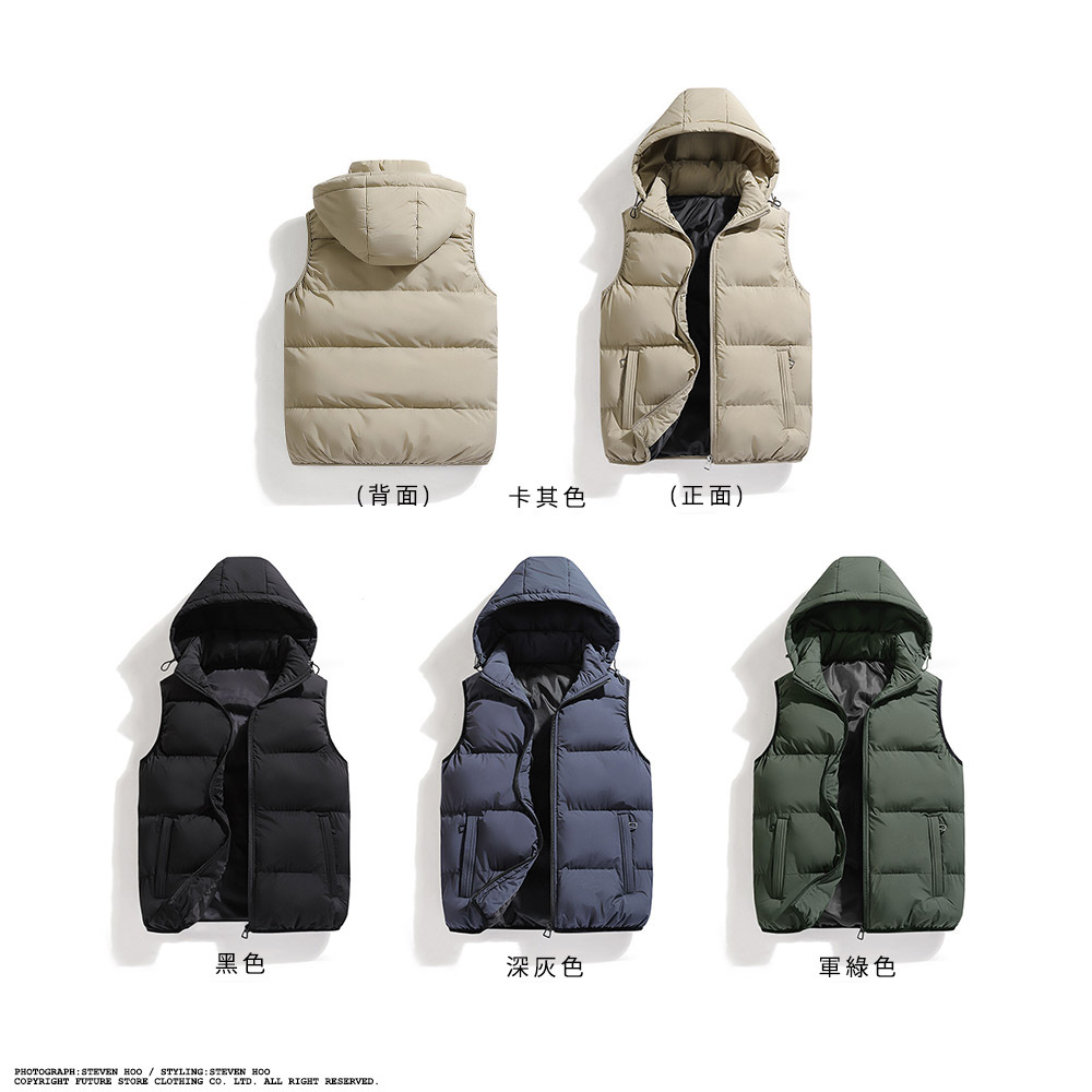冬季 鋪棉加厚 背心 袖口包邊 保暖休閒 帽子可拆 百搭坎肩背心