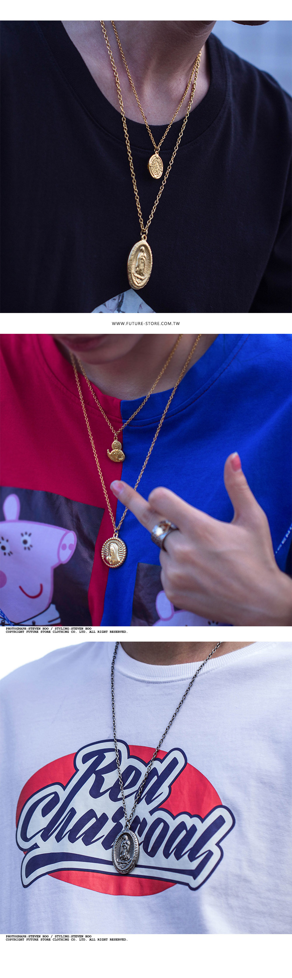 潮牌項鏈 聖母金色 鈦鋼 男女項鏈 歐美潮人 復古古人像 情侶項鏈配飾