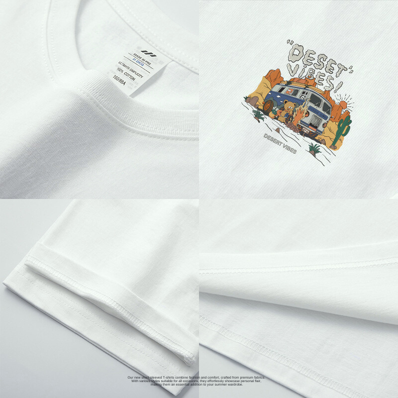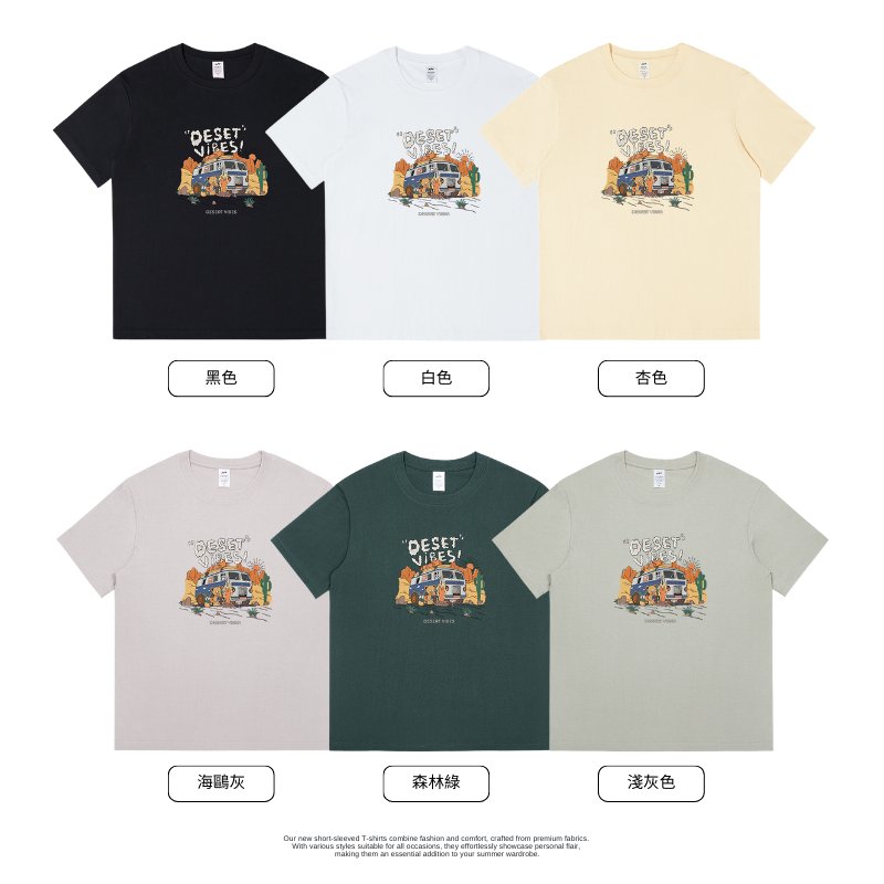 美式休閒寬鬆簡約戶外度假印花短TEE