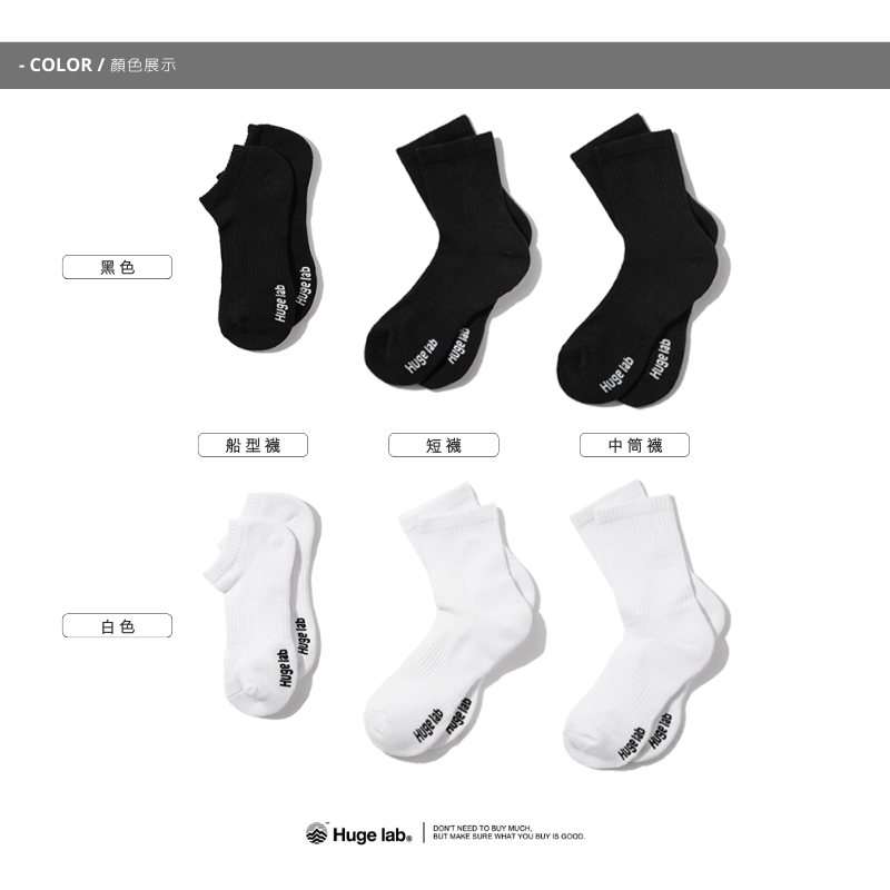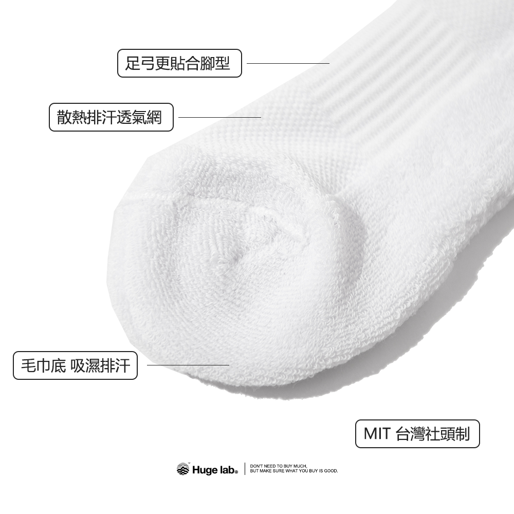 Huge Lab. 台灣社頭製 毛巾底 厚底機能運動休閒襪