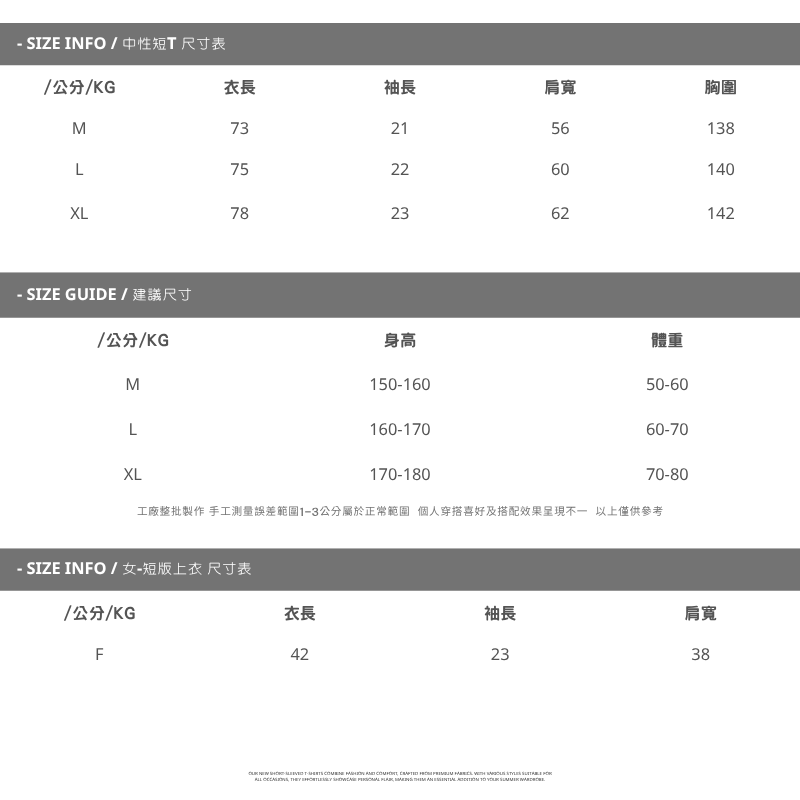 女 - 162/42 穿L號 寬鬆 女短版 F號