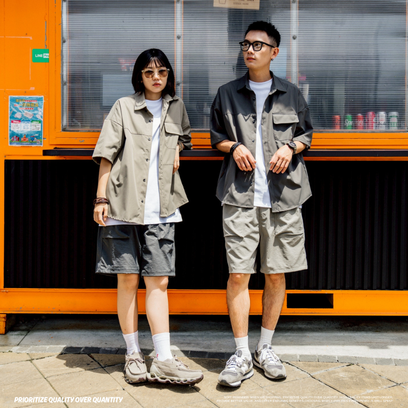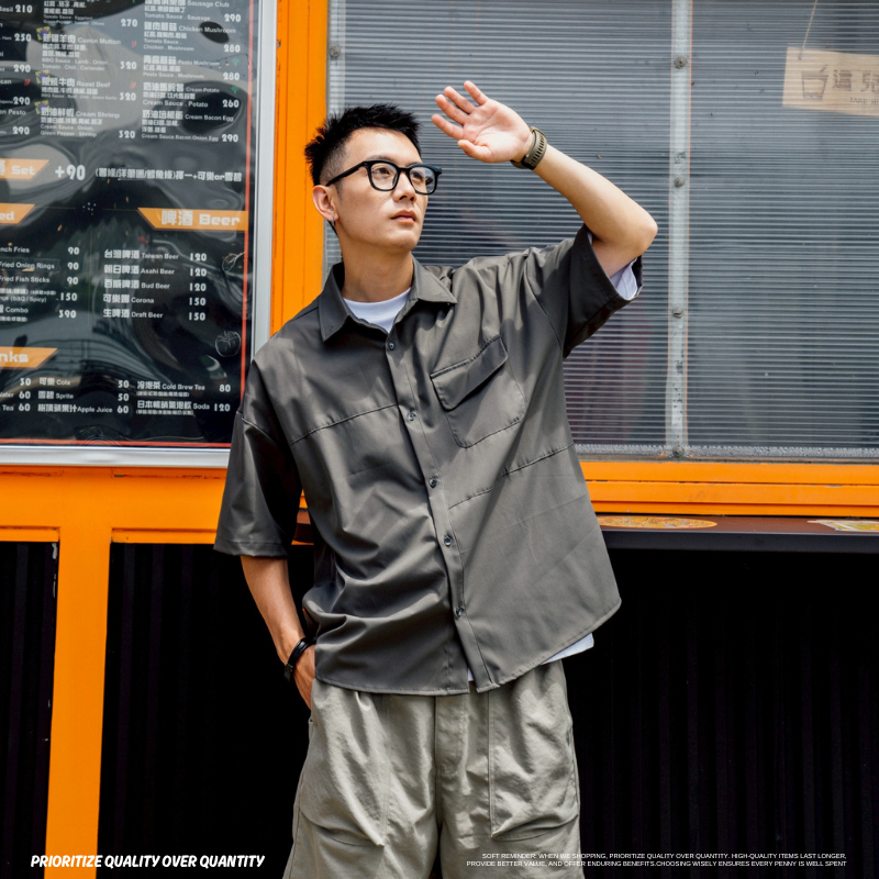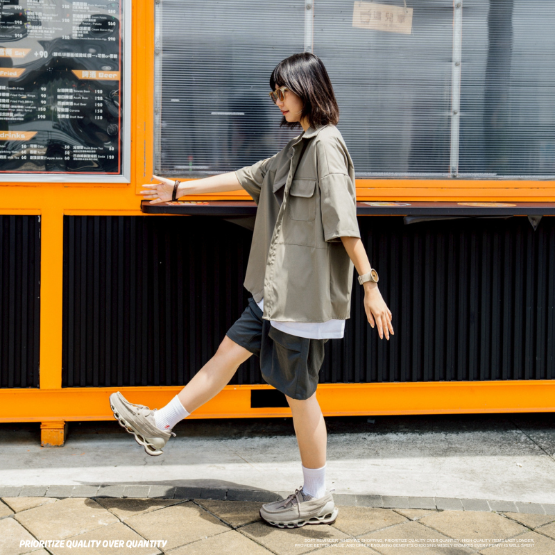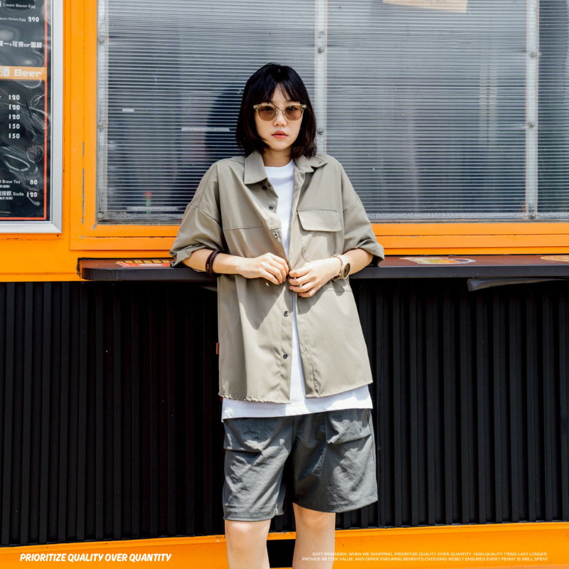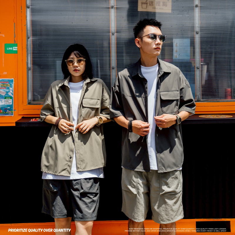 機能戶外口袋落肩工裝襯衫